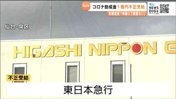 宮城労働局によりますと、東日本急行は2020年から3年間、コロナ対策の雇用調整助成金約1億1400万円を不正受給していたということです。