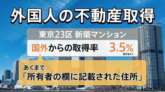 ただ、これは「所有者の欄に記載された住所が国外」の割合が3.5%ということで、例えば、日本にいる外国人の購入の実態は含まれておらず、正確な把握がまだ追いついていないという状況です。