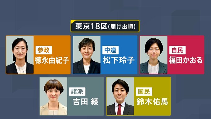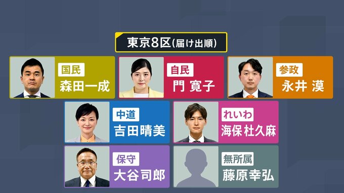 この傾向が顕著に見て取れるのが、東京8区(杉並区)。情勢としては、自民党の門寛子氏と中道の吉田晴美氏が接戦となっている。前回は野党共闘で一本化した吉田氏が勝利したが、今回は国民民主党やれいわ新選組なども立候補し、野党票が分散する「野党分裂」の状況になっている。