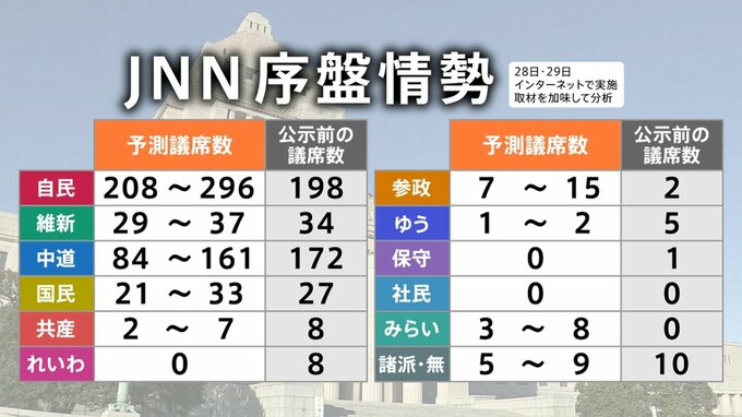 JNNでは1月28日・29日の2日間で調査を実施し、さらには取材を加味して序盤情勢の分析を行いました。