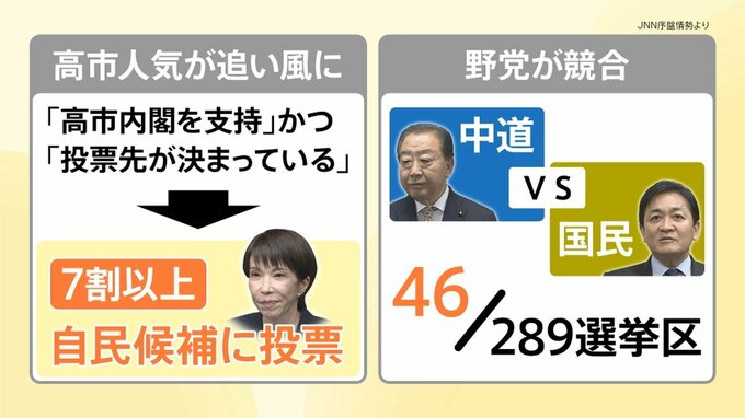 自民は高市人気が追い風、野党は中道が伸び悩み