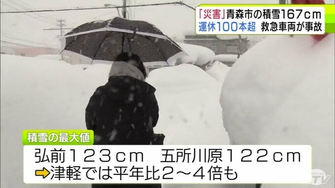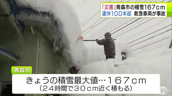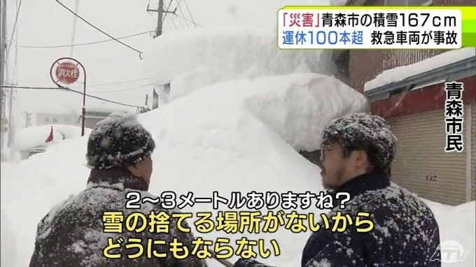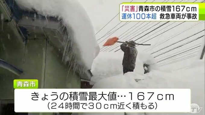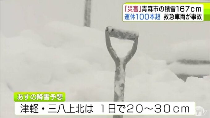 【雪の予想・30日午後9時半現在】「本当に災害だ」捨て場のない雪・救急車両の事故発生・JRは100本以上が運休… 一時積雪167cm観測の青森市 市民から悲鳴 大雪シミュレーションで見る最新予想は? 2時間前