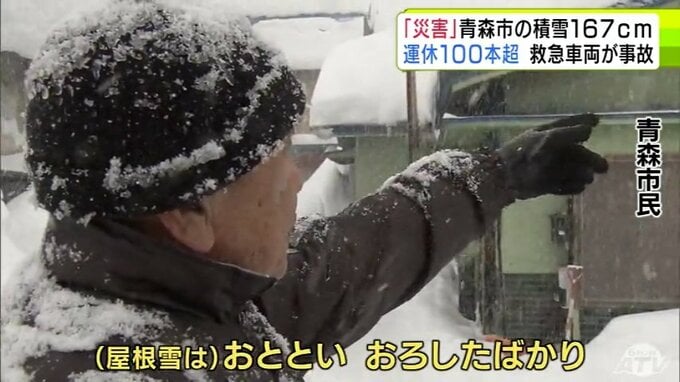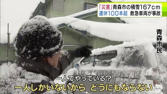 【雪の予想・30日午後9時半現在】「本当に災害だ」捨て場のない雪・救急車両の事故発生・JRは100本以上が運休… 一時積雪167cm観測の青森市 市民から悲鳴 大雪シミュレーションで見る最新予想は? 青森テレビ 2026年1月30日(金) 21:50 国内 ♦大雪などの予想シミュレーションを見る (30~31日、2月1日、2日、3日、4日~5日) ♦この記事を最初から読む