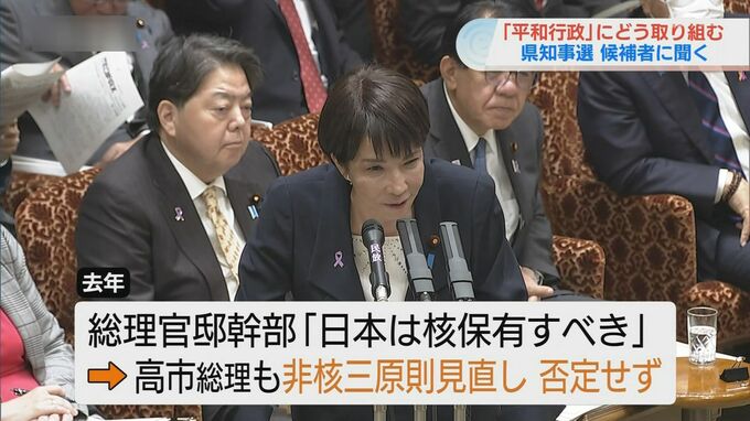 来月8日に行われる長崎県知事選挙。各候補者に行ったアンケート調査を元にそれぞれの県政課題に対する考えや政策をお伝えしています。3回目は核兵器禁止条約に対するスタンスや被爆体験の継承など「平和行政」についてのアンケート結果です。