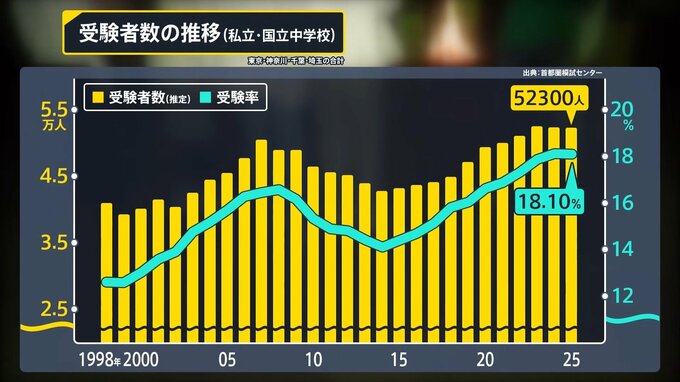 その受験者数は2025年、5万2300人と過去3番目に多く、首都圏では約5人に1人が受験するなどブームは続いています。