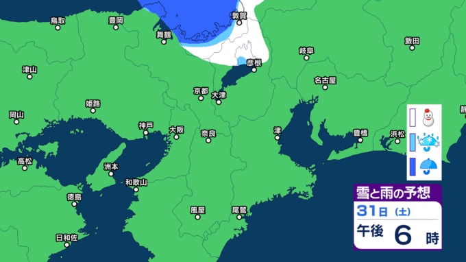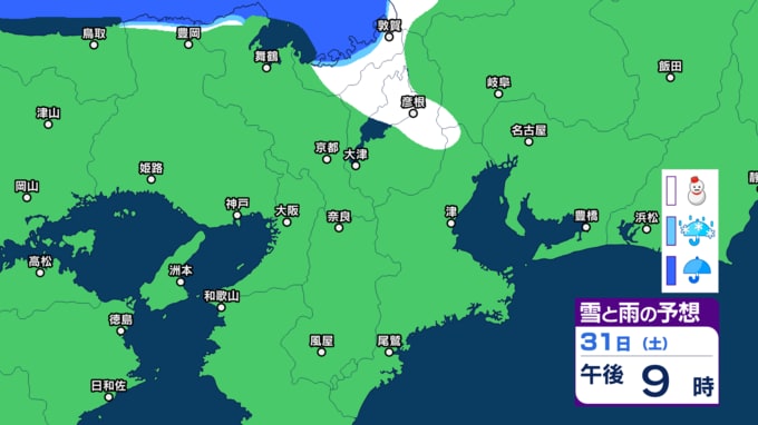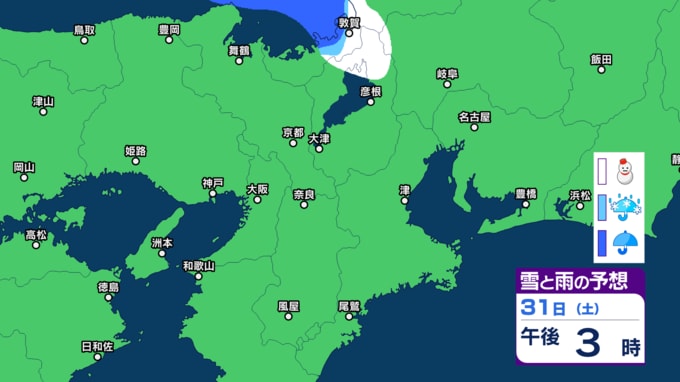 【関西の雪】近畿地方(大阪・京都・神戸・滋賀・奈良・和歌山)の雪雨シミュレーション【気象庁/31日】 RSK山陽放送 2026年1月31日(土) 10:00 国内 天気 31日(土) 気象庁によりますと、31日の近畿地方は、寒気や湿った空気の影響でおおむね曇り、北部では朝にかけて雪が降り、夜遅くは雷を伴う所があるでしょう。