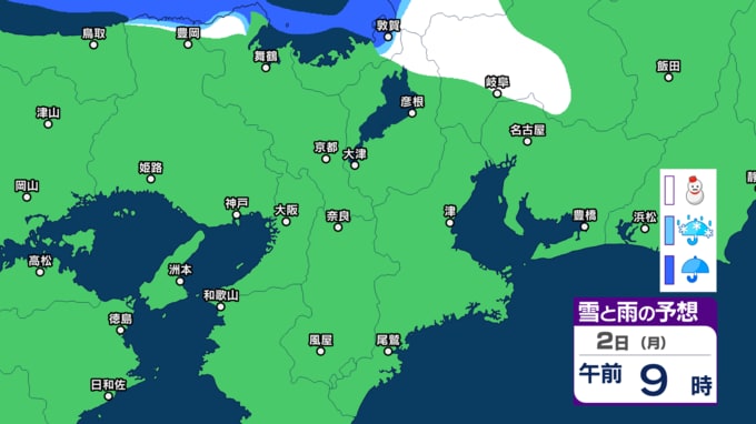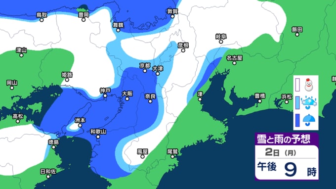【関西の雪】近畿地方(大阪・京都・神戸・滋賀・奈良・和歌山)の雪雨シミュレーション【気象庁/31日】