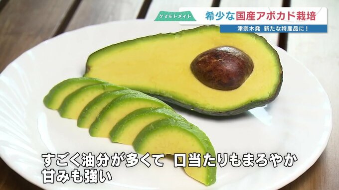 津奈木町の新たな特産品として、広く知ってもらいたいと願う野﨑さん。地域の朝市でアボカドを販売したり、苗木を販売して生産者を増やす取り組みを進めたりしています。
