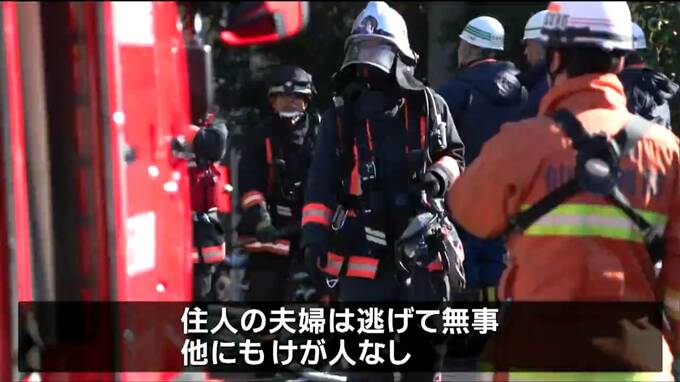 警察や消防によりますと、火が出た当時、母屋には夫婦がいましたが逃げて無事で、ほかにけがをした人もいないということです。