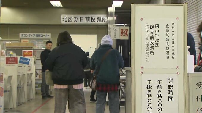 期日前投票は公示日翌日の今月28日から始まっていて、岡山市北区の市役所にある期日前投票所でも多くの有権者が票を投じていました。