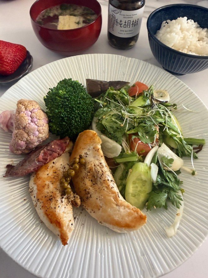 と、対比しながら紹介。麻世さんは「カロリーを摂取し過ぎたなと感じた翌朝はこんな感じ」と、夫婦でメニューが違う日について説明。
