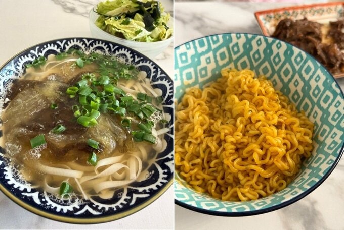 「俺は豆腐麺」「妻は韓国の辛ラーメン トゥーンバと牛肉」