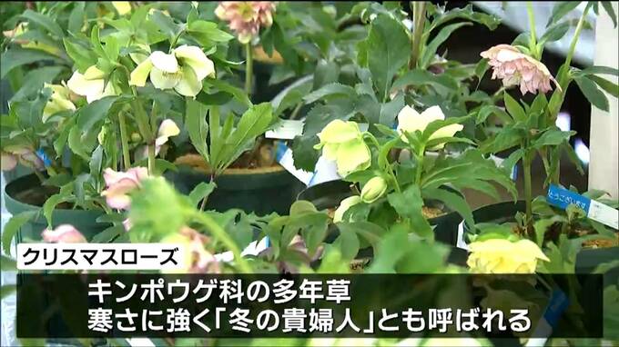 村田町の「道の駅村田」では、地元の園芸農家が育てた鉢植えのクリスマスローズおよそ1000点が展示即売されています。
