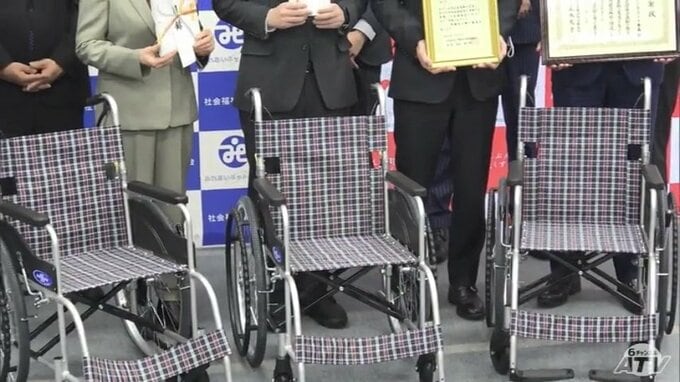 青森県青森市の自動車リース会社が29日県内の社会福祉法人に車いすを寄贈しました。これは、トヨタレンタリース青森の社会貢献活動の一環で、社員が回収した5トンを超えるアルミ缶を換金して、県内8つの社会福祉法…