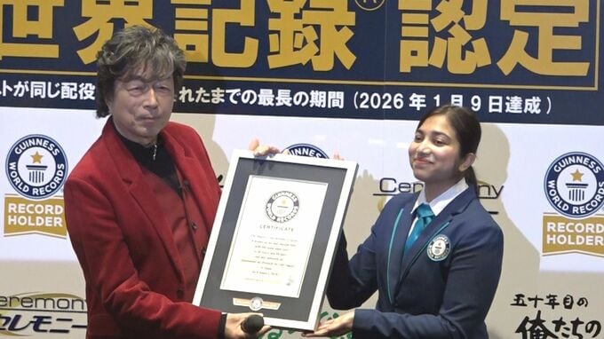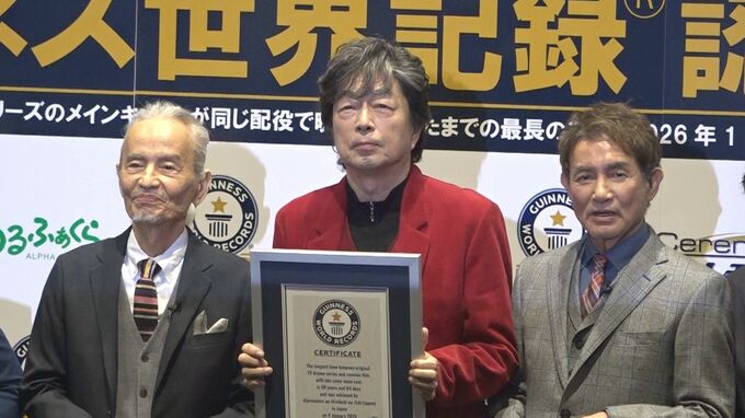 さらにこの日は、同作が「テレビシリーズメインキャストが同じ配役で映画化されたまでの最長期間」としてギネス世界記録™に認定されたこともサプライズで発表され、表彰式が行われました。