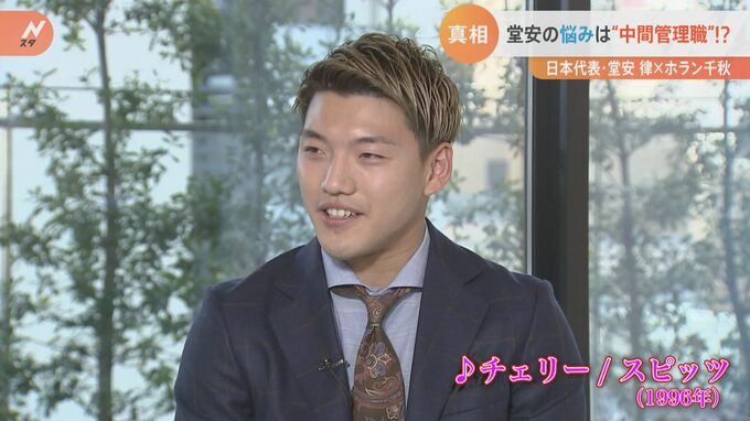 「ジェネレーションギャップ、やっぱ生まれちゃうんすよね。(長友)佑都くん、吉田さん含めて、上の方から『律、それは違う』と言われ、下には(久保)建英とかいるんですけど、建英には『律くん、それは変えてください』って言われながら。すっごい、僕、空気読みながら音楽を選んでて。笑」