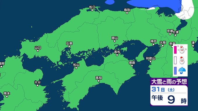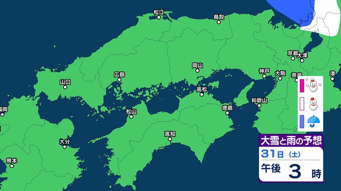 気象庁によりますと、31日(土)は岡山県、広島県、島根県、四国地方では、寒気や湿った空気の影響でおおむね曇りとなるでしょう。