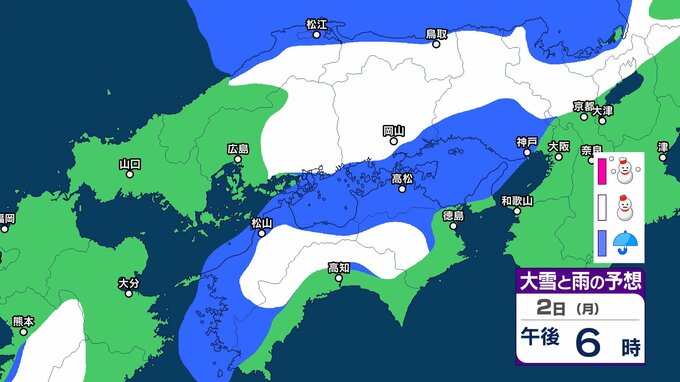 【雪】中国・四国地方の今後の雪は? 広島・岡山・山口・鳥取・島根・香川・愛媛・高知・徳島 1月31日(土)~2月5日(木)までの雪雨シミュレーション【気象庁 /31日午後6時更新】 RSK山陽放送 2026年1月31日(土) 18:00 国内 天気 2日(月) 12 13 14 15 16 17 18 19