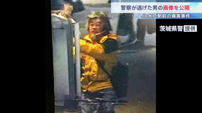 きのう、茨城県のJR水戸駅前で、男女4人が面識のない男に突然殴られるなどして重軽傷を負った事件で、警察はきょう、逃げた男の画像を公開し、情報提供を呼びかけています。黄色のダウンジャケット姿で自転車に乗…