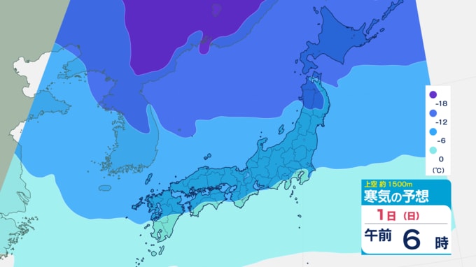 2月1日(日)には上空5000メートル付近でマイナス36度以下の強力な寒気が再び南下する見込みです。