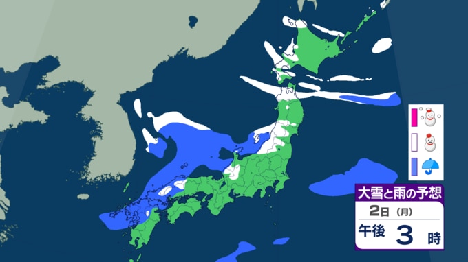 【雪情報】東京の雪リスク低下 2日(月)は九州・山陰・近畿など西日本の日本海側で再び大雪警戒 雨雪シミュレーション 長崎放送 2026年1月31日(土) 18:39 国内 2月2日(月)は西日本で再び雪が強まる恐れ ◆雨雪シミュレーション ◆寒気シミュレーション 週明けの2日(月)は、 若狭湾付近を進む低気圧の影響で、近畿や山陰など西日本の日本海側でも再び降雪が強まる見込みです。 九州や四国でも雪や雨になる可能性があるため、最新の気象情報に注意してください。