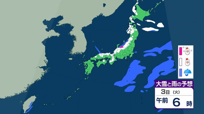 1月31日18時からの24時間に予想される降雪量は、多い所で北陸地方で60cm、東北地方で50cm、北海道地方で30cmの見通しです。