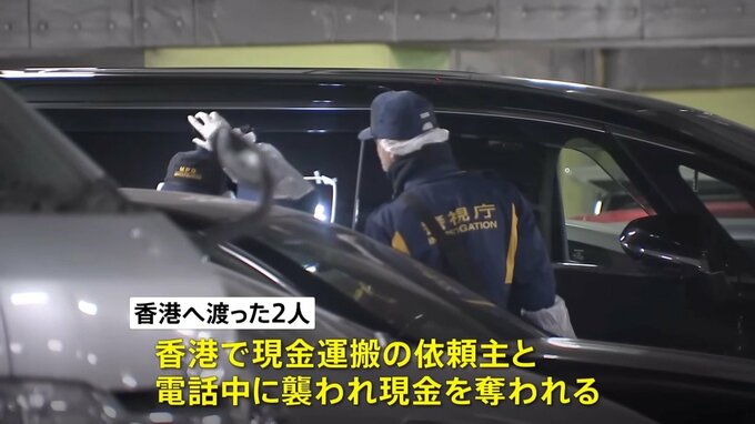 襲われた4人のうち2人は香港にわたりましたが、警視庁によりますと、香港に到着したあと、現金運搬の依頼主である30代の会社社長と電話で話している最中に襲われ、現金を奪われたということです。