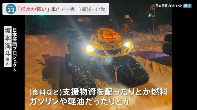 「普通に嬉しいです。もうガソリンもないので、暖房もずっとつけていられないので助かりますね。(Q.夜中はどう過ごした?)夜中はたまに動くので30分に1回ぐらい起きて、前、確認して空いていればちょっと前に出る感じで」