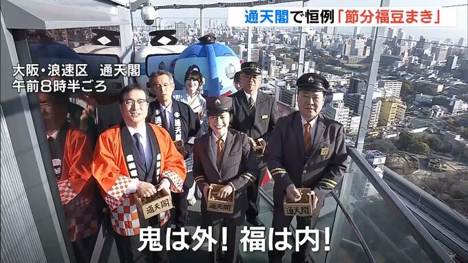 2月3日の「節分の日」を前に、大阪の通天閣では一足早く「豆まき」が行われました。 「鬼は外!福は内!」 1日、通天閣で行われたのは恒例の「福豆まき」です。大阪の人たちの繁栄と幸福を祈るこのイベントは…