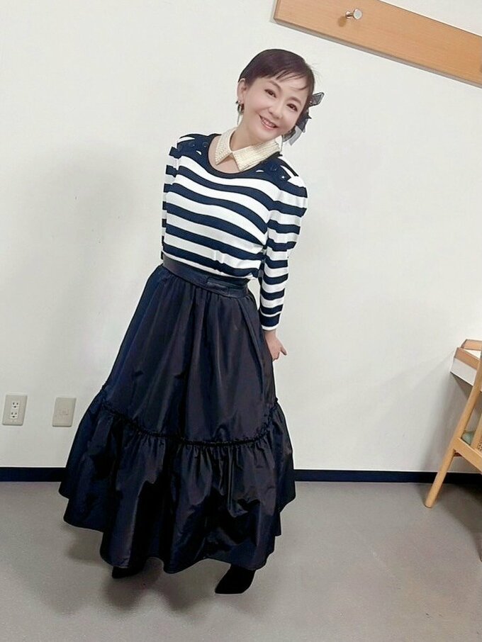 投稿された画像では、華原朋美さんが、頭に黒いリボンを付け、黒白のボーダーのトップスに、黒いスカートを身に着け、笑顔を浮かべる様子が見て取れます。