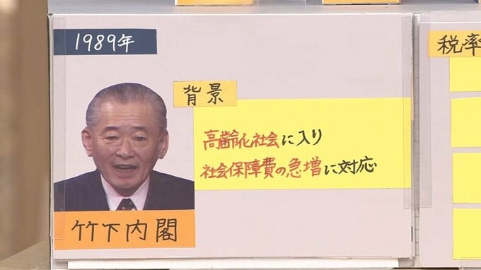 投開票日まで1週間 税収最大の柱「消費税」与野党とも「減税」で争点見えにくい衆議院選挙 財源議論は? 経済界からは“クギ”さす声も…【サンデーモーニング】 TBSテレビ 2026年2月1日(日) 13:01 国内 なぜ導入?消費税の歴史 導入したのは1989年の竹下内閣。高齢化社会に入り、社会保障費の急増に対応を迫られたことなどが背景にあります。税率は当初3%でしたが、97年に5%、2014年に8%、そして19年にいまと同じ10%になりました。