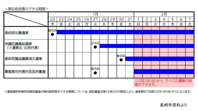 長崎市では今月8日、告示や公示日が異なる5つの投票が重なることから、期日前投票が段階的に始まっています。