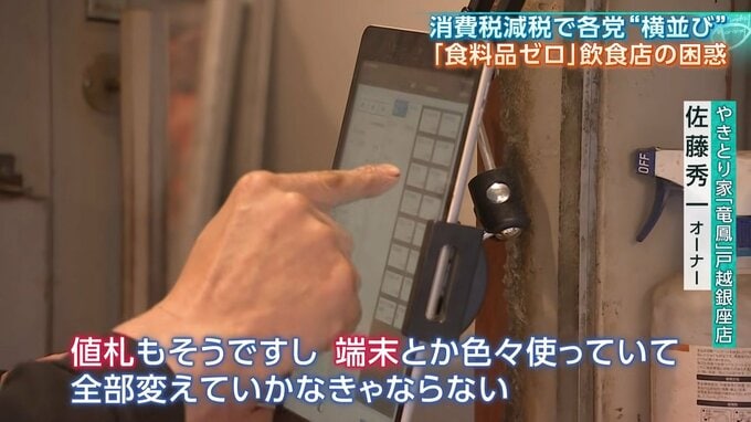 「食品だけゼロになっちゃうと、(仕入れ分の消費税を)丸々払わなきゃいけなくなっちゃいますよね」