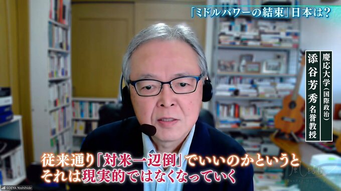 「従来通り『対米一辺倒』でいいのかというと、それは現実的ではなくなっていく。やはりミドルパワー連携(が必要)、例えば、東南アジアとは比較的良い関係を、70年代以降築いてきた。アジアの国々が協力して安全保障の枠組みを少しずつ作り出し、地域秩序を考えて協力をすれば、ミドルパワーが力を発揮できる」