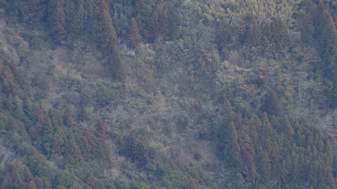 現場は山の中腹で、道が狭く、風の影響などもあり、消火作業に時間を要していましたが、消防は1日午後1時前、延焼の危険がなくなったとして「鎮圧」を発表しました。現在も消火作業が進められていますが、鎮火は2日以降になる見通しだということです。焼損面積については鎮火後に発表するとしています。