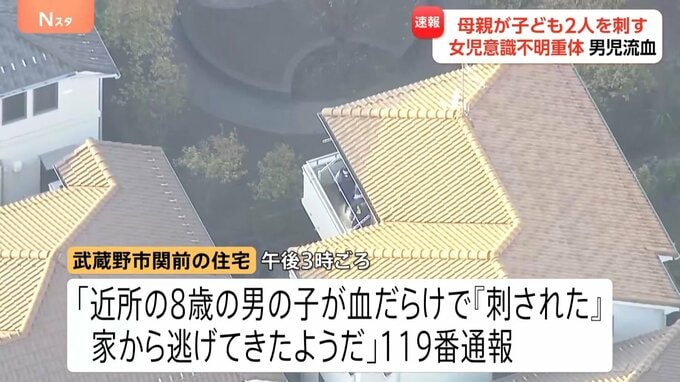きょう午後、東京・武蔵野市の住宅に、近所に住む8歳ぐらいの男の子が「刺された」と言い逃げてきました。