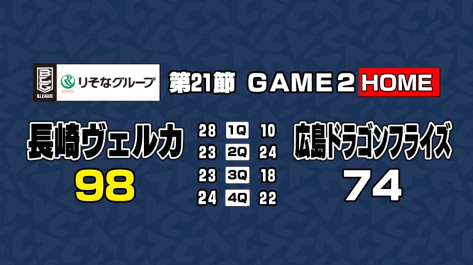りそなグループバスケットボールB1、長崎ヴェルカの結果です。