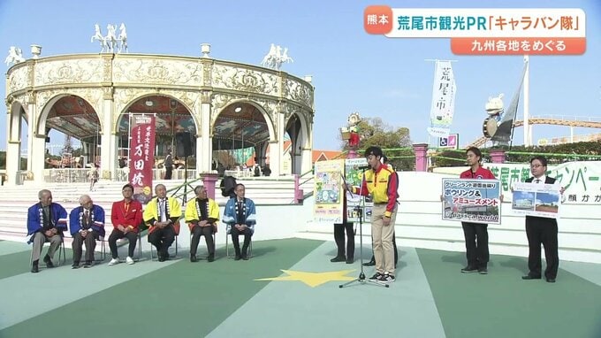 市の職員や観光協会のスタッフなどで組織するキャラバン隊は、これから九州各地の放送局を巡るなどして荒尾市をPRする予定です。