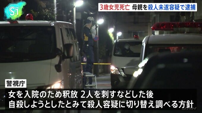 東京・武蔵野市の住宅で、3歳の女の子を刺し殺害しようとしたとして、母親が逮捕されました。女の子はその後、死亡しました。殺人未遂の疑いで現行犯逮捕されたのは、武蔵野市の無職の女(45)です。女はきのう午…