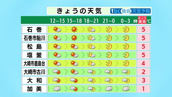 ■石巻:5℃ ■石巻市鮎川:5℃ ■松島:5℃