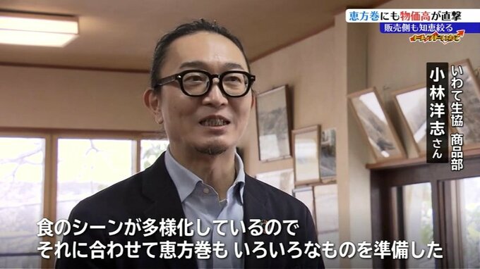「のりもそうですけど、おコメも非常に高くなっている中で、パンの需要もあるかっていうのと、あとはいろんな食のシーンが多様化しているので、それに合わせて恵方巻もいろいろなものを準備したいなということで」