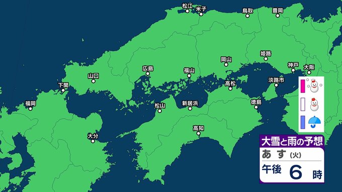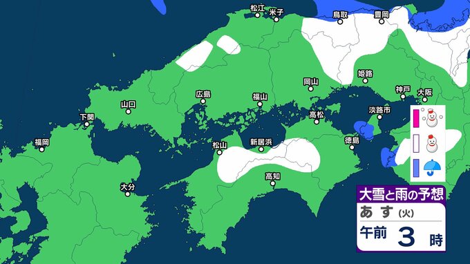 広島県は、寒気や湿った空気の影響で曇り、北部では明け方まで雷を伴い雪の降る所がある見込みです。昼前からは高気圧に覆われて次第に晴れるでしょう。