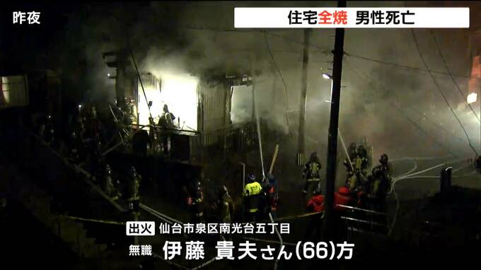 1日夜、仙台市内で住宅1棟を全焼する火事があり、この家に1人で住む男性が死亡しました。
