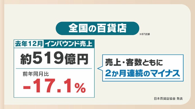 全国の百貨店の去年12月のインバウンドの売り上げ高は519億円。