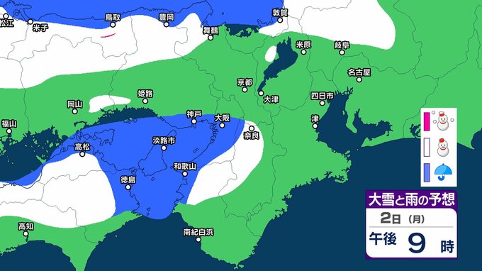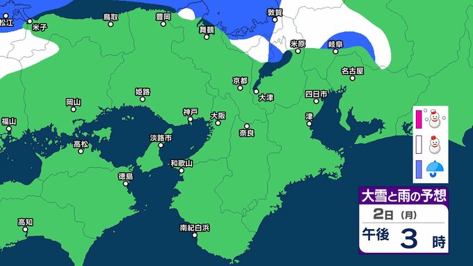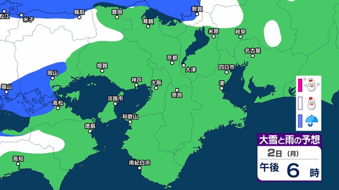 京都府は、南部では高気圧に覆われておおむね晴れますが、北部では低気圧や湿った空気の影響でおおむね曇り、北部を中心に夜は雪や雨が降るでしょう。雷を伴う所がある見込みです。