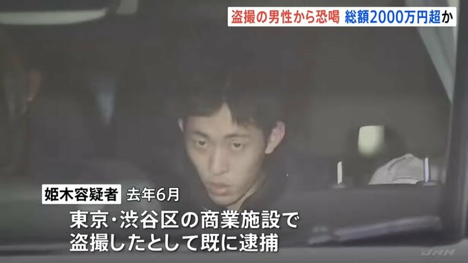 盗撮中の人物を狙い恐喝繰り返し数十人から2000万円以上脅し取ったか 22歳男を逮捕 容疑者自身も盗撮していた疑い TBSテレビ 2026年2月2日(月) 12:00 国内 去年、姫木容疑者も盗撮したとして逮捕されていた 一方、姫木容疑者自身も去年、渋谷区で女性のスカートの中を盗撮したとして既に逮捕されていて、姫木容疑者は容疑を認めているということです。