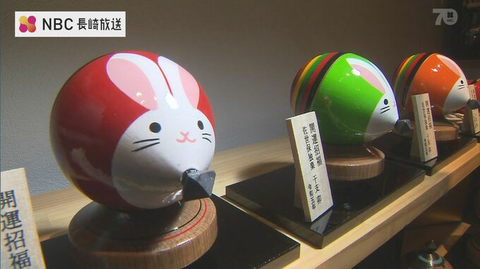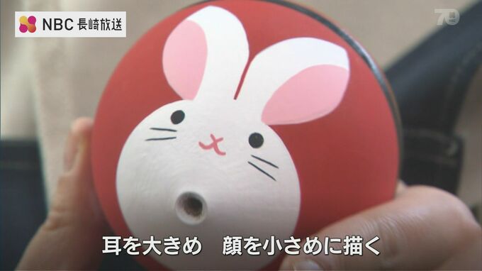 正月用の縁起物として人気の高い『来年の干支・ウサギ』を描いた佐世保独楽作りが、最盛期を迎えています。