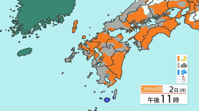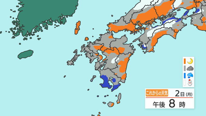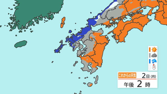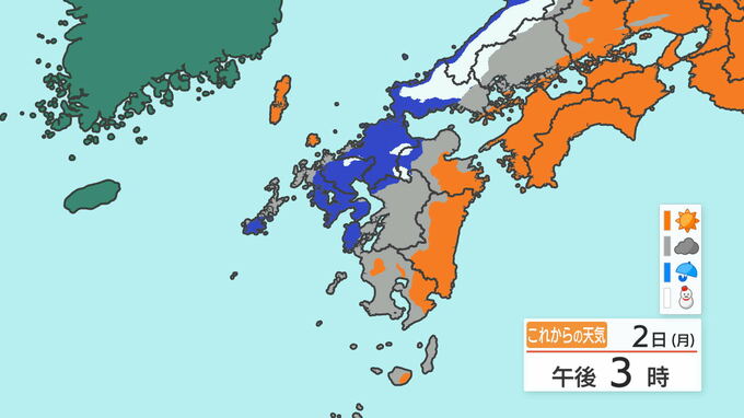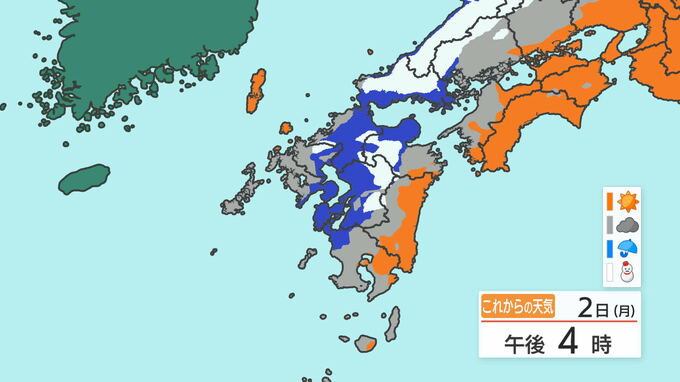 熊本県以外には、予想降雪量は発表されていませんが、シミュレーションでは、「福岡県・大分県・宮崎県」にも「雪」が予想されています。