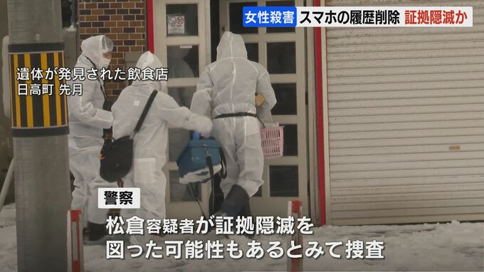 北海道日高町の飲食店で女性の遺体が見つかった事件で、逮捕された49歳の男がスマートフォンの発着信履歴を削除していたことがわかりました。