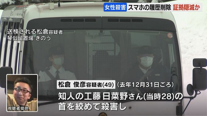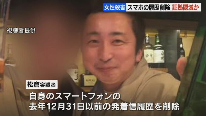 捜査関係者によりますと松倉容疑者は、自身のスマートフォンの12月31日以前の発着信履歴を削除していたということです。
